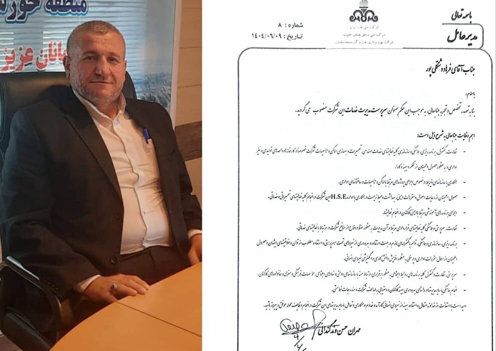 آروان خبر//با صدور حکمی از سوی مهران حسنودگندائی مدیرعامل شرکت بهرهبرداری نفت و گاز مسجدسلیمان، فرهاد دشتگلیپور بهعنوان سرپرست خدمات و عضو هیأتمدیره این شرکت منصوب شد. دشتگلیپور که از چهرههای بومی، متعهد و خوشسابقه در حوزه خدمات شهری و صنعت نفت بهشمار میرود، اکنون در جایگاهی قرار گرفته که انتظار میرود نقش مؤثری در […]